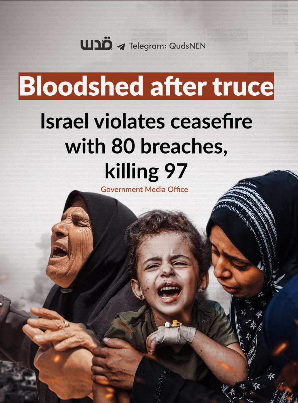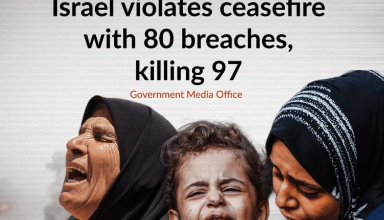Since the ceasefire took effect in the Gaza Strip on October 10, Israeli forces have killed at least 97 Palestinians and injured 230 others, according to the Gaza Government Media Office.