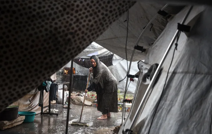 Displaced Palestinian families in Gaza woke up to find water flooding their tents, after heavy rainfall left their shelters and belongings soaked. It is now the third winter they have endured since the start of the two-year Israeli genocide.