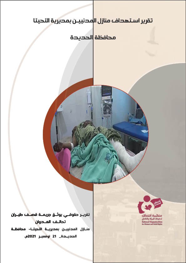 The Entesaf Organization for Women and Children’s Rights issued a human rights report documenting “the targeting of civilian homes in Al-Tuhayta District, Hodeidah Governorate.” The report addresses the crime of the Saudi-led coalition airstrikes on civilian homes in Al-Tuhayta District, Hodeidah Governorate, which resulted in civilian casualties, including women and children, on November 21, 2021.