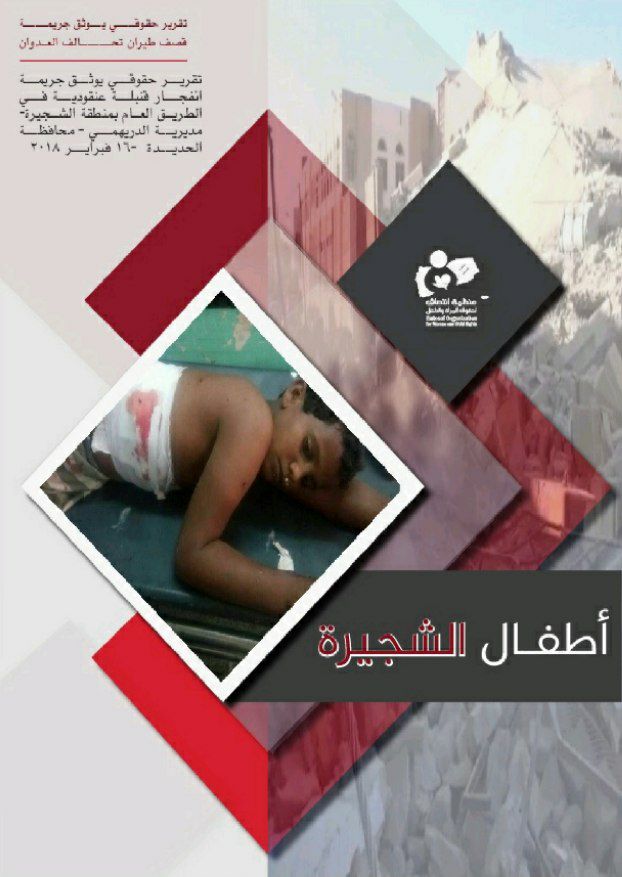 The Entesaf Organization for Women and Children’s Rights documented a human rights report entitled “Children of Al-Shujayra,” which addressed the crime of a cluster bomb explosion on a public road in the Al-Shujayra area of Al-Durayhimi District, Hodeidah Governorate, on February 16, 2018, which claimed the lives of civilians, including women and children.