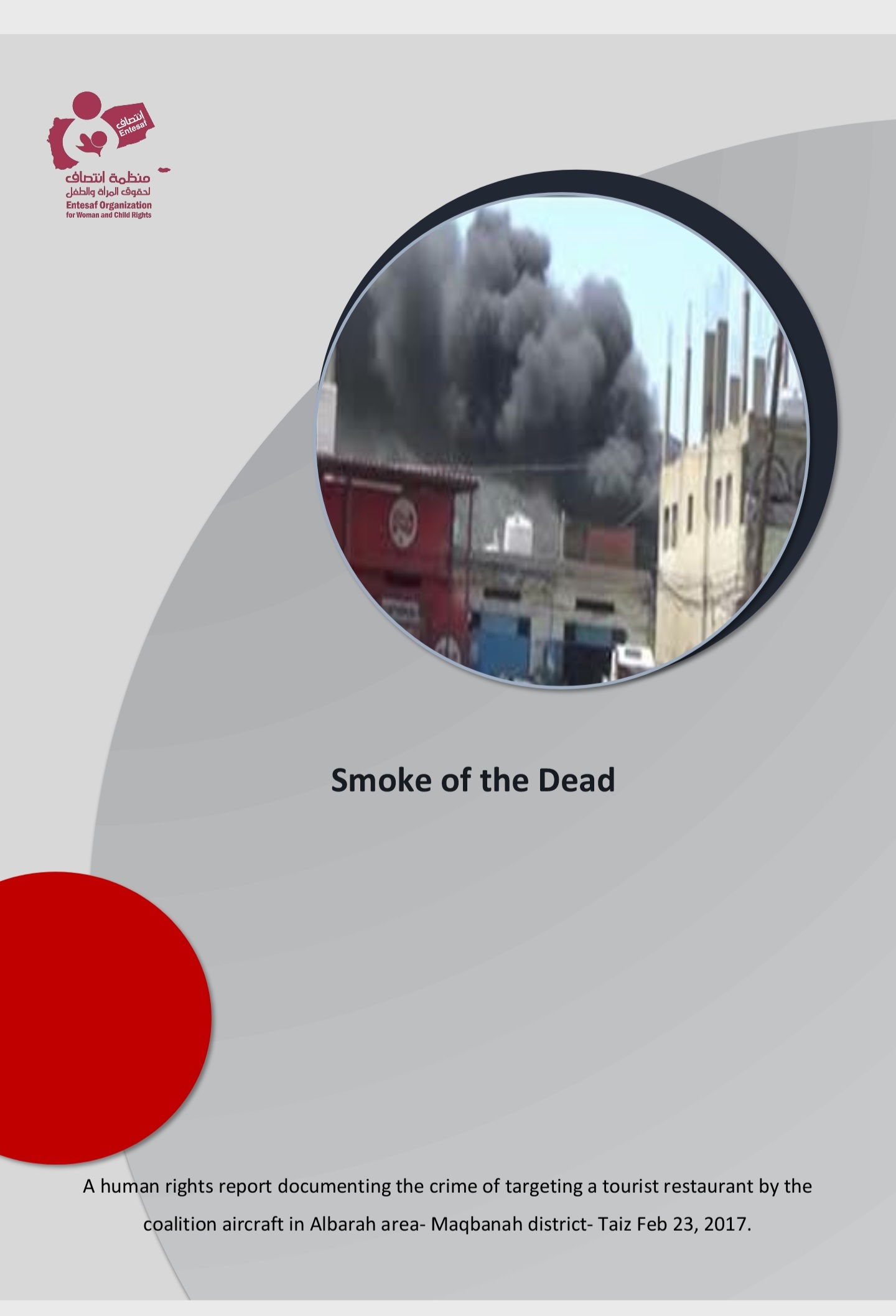 Entesaf for woman and child Rights released a human rights’ report entitled “Smoke of the Dead”, where the report covered the crime committed by the coalition of aggressiton against the civilians in the tourist restaurant in Taiz, which killed 6 civilians including 2 children and wounded 4 civilians.