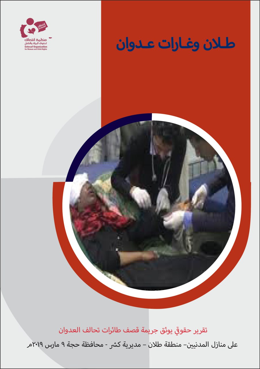 The Entesaf Organization for Women and Children’s Rights documented a human rights report entitled “Talan and the Aggression Airstrikes.” The report addressed the crime committed by the Saudi-led coalition airstrikes on civilian homes in the Talan area of ​​Kushar District, Hajjah Governorate, which resulted in the deaths of civilians, including women and children, on March 9, 2019.