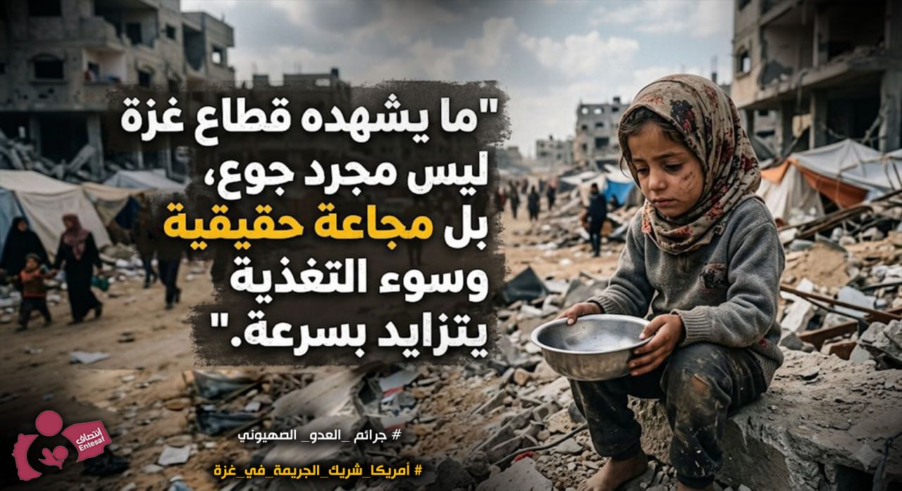 What the Gaza Strip is experiencing is not just hunger, but a genuine famine and rapidly escalating malnutrition. #Zionist_Enemy_Crimes #America_Partner_in_Gaza_Crime #Entesaf_Org On Apr 16, 2026 Share Share FacebookTwitterGoogle+ReddItWhatsAppPinterestEmail
