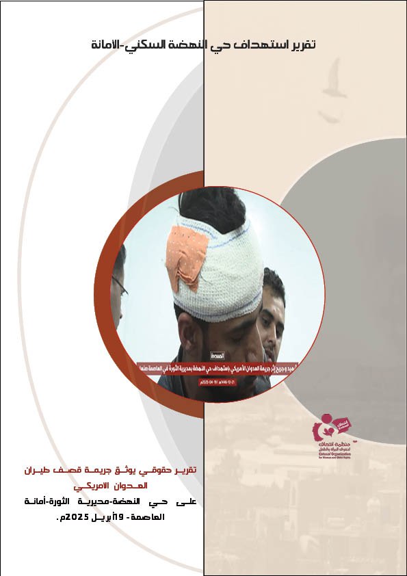 The Entesaf Organization for Women and Children’s Rights documented a human rights report entitled “Report on the Targeting of Al-Nahda Residential Neighborhood – Sana’a.” The report addresses the crime of the Saudi-led coalition airstrike on a residential neighborhood in the Al-Nahda district of Al-Thawra Directorate in the capital, Sana’a, which resulted in civilian casualties, including women and children, on April 19, 2025.